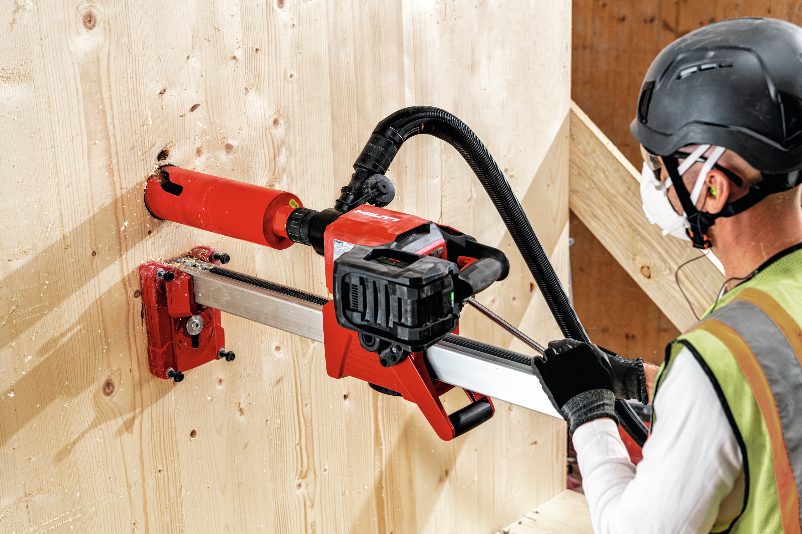 Statywy do wiertnic Hilti wspierają szybsze i bezpieczne wiercenie otworów. Do zamontowania wiertnicy na statywie nie są potrzebne żadne narzędzia ani klucze – wystarczy użyć szybkozłącza, aby zatrzasnąć jednostkę napędową na stojaku. Aby zaoszczędzić czas w przypadku materiałów bazowych gładkich, użyj pompy próżniowej, aby zabezpieczyć platformę bez konieczności wiercenia i kotwienia.