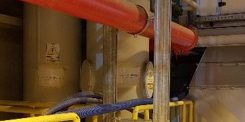 - Instalacja hydrantowa w obiekcie kotłowni i maszynowni. Stalowe rurociągi mocowane do konstrukcji stalowej.