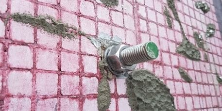- Mocowanie mające na celu zespojenie warstwy fakturowej, izolacyjnej oraz konstrukcyjnej budynku za pomocą systemu składającego się z żywicy.