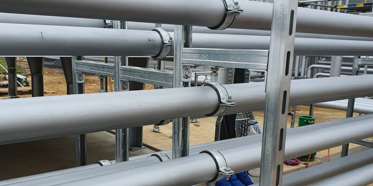 Wykorzystanie systemu zawiesi instalacyjnych systemu MQ oraz MI w ocynku ogniowym do wykonania podkonstrukcji pod instalacje takie jak instalacje: gazu, oleju, chłodu, grzania, kondensatu, ciepłej wody na łączną kwotę 200tys. złotych