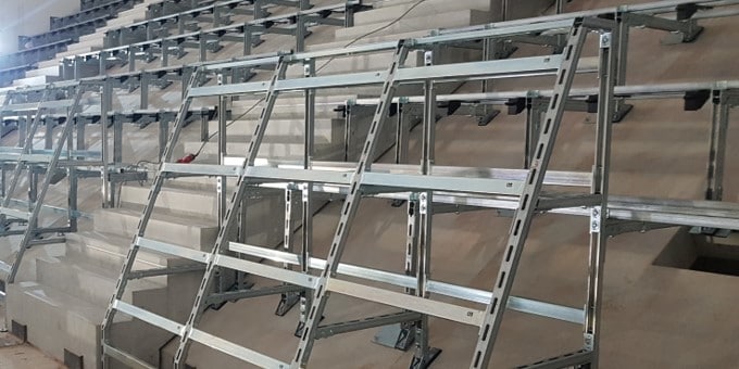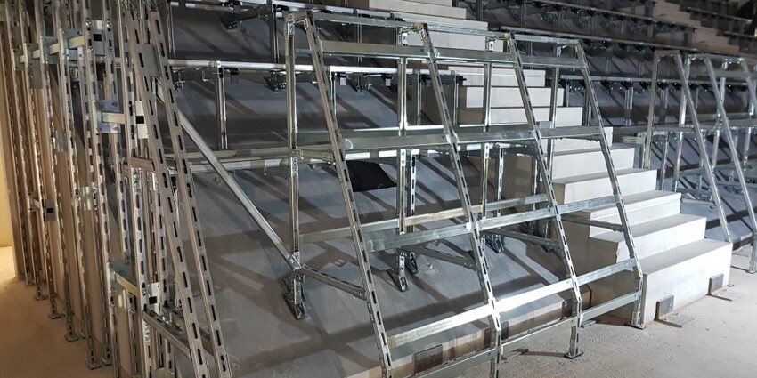 1. Konstrukcja wsporcza trybuny wykonana z elementów systemu instalacyjnego Hilti MQ.