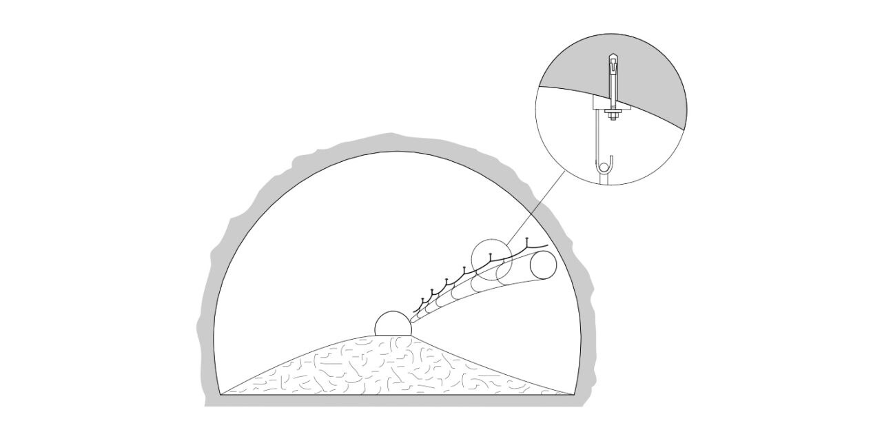 Podczas budowy i prac modernizacyjnych w tunelu należy zapewnić odpowiednią wentylację w celu zmniejszenia ryzyka dla zdrowia. Wentylacja może być również stosowana do chłodzenia tunelu. Przewody wentylacyjne (rury z tworzywa sztucznego) służące do czasowej wentylacji podczas budowy tunelu są zwykle podwieszane do haka drucianego mocowanego do stropu tunelu. Wymogi dotyczące odporności na korozję zazwyczaj są pomijane w przypadku mocowań tymczasowych.