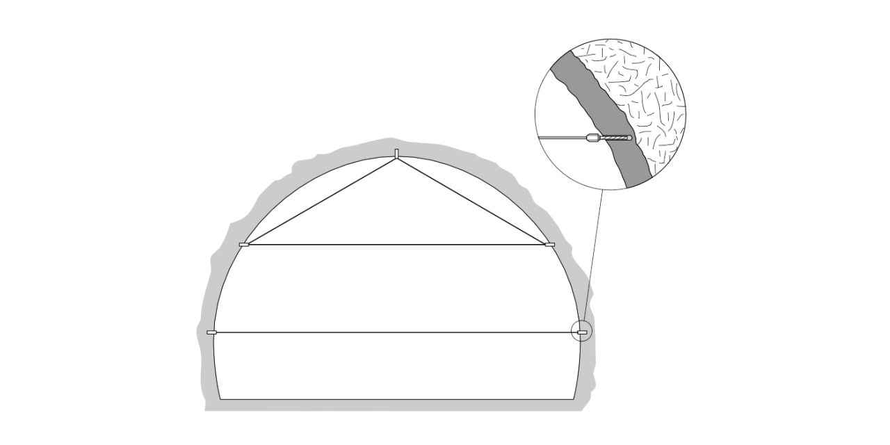 Do badań terenowych wymagane są punkty odniesienia i stałe punkty wzdłuż tunelu. Dodatkowo zainstalowane są ekstensometry do kontroli zbieżności przekroju poprzecznego tunelu.