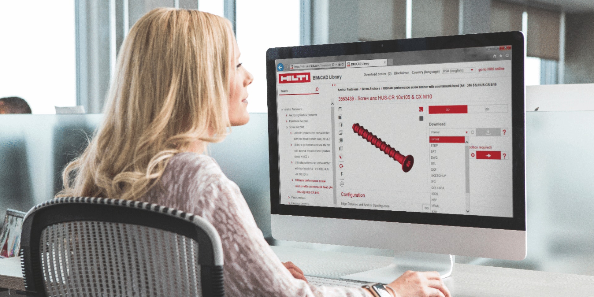 Dzięki bibliotece HILTI BIM/CAD wszystkie potrzebne warianty produktu można łatwo wyeksportować w formacie odpowiednim dla Twojego oprogramowania CAD