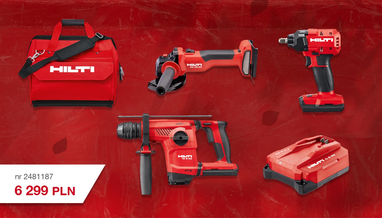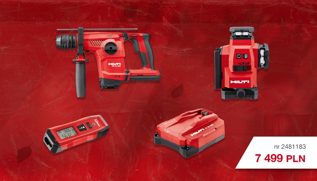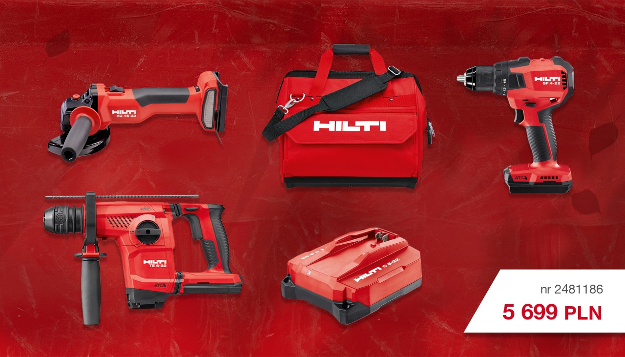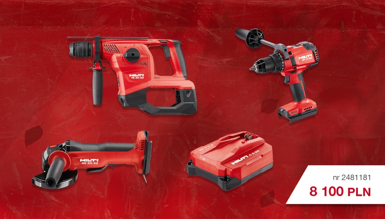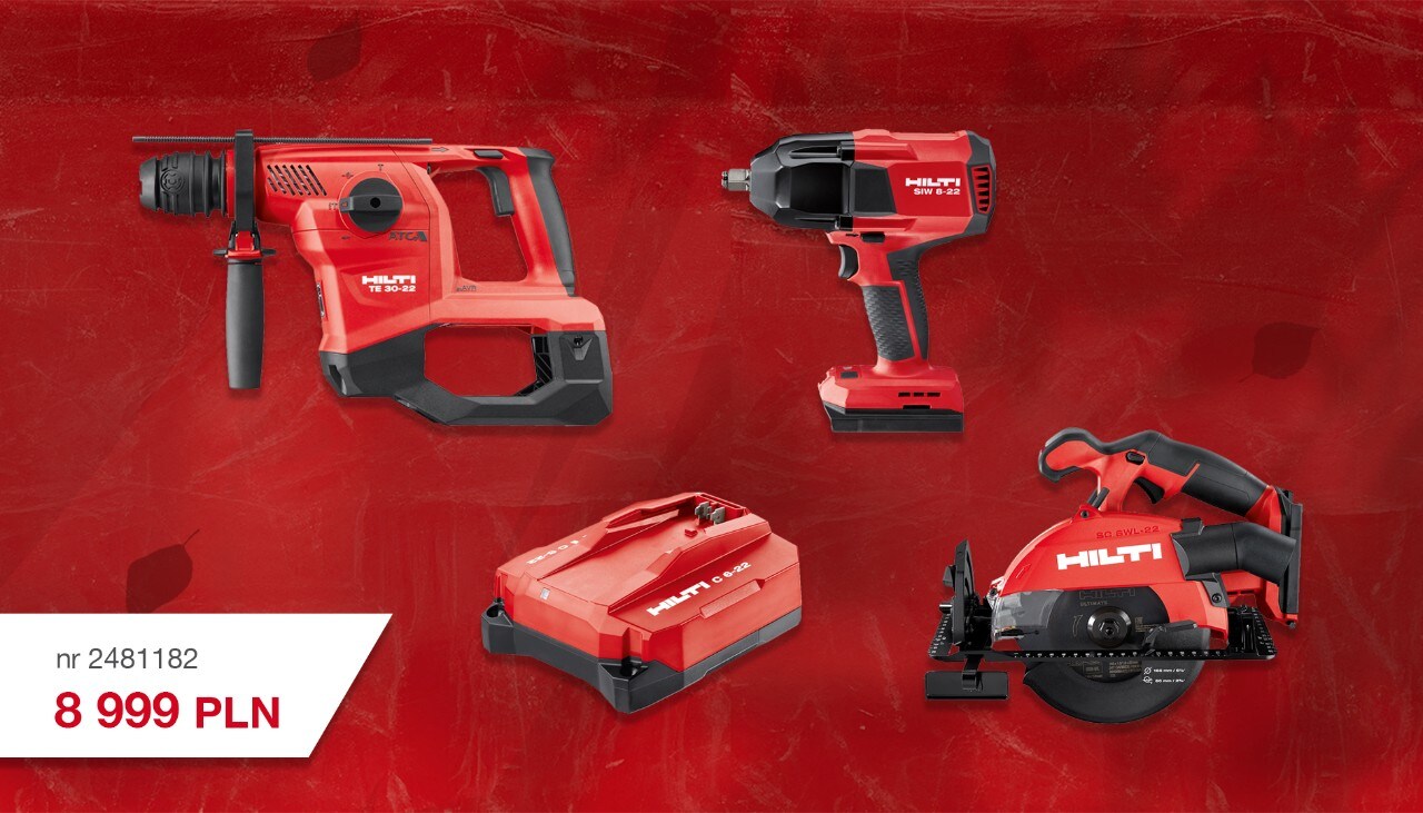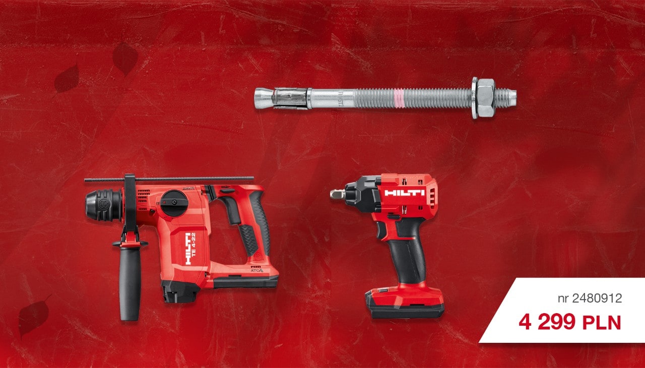Sprawdź ofertę „Jesień z Hilti” i wybierz zestaw profesjonalnych elektronarzędzi i akcesoriów dopasowany do Twoich potrzeb. W ofercie m.in. młoty akumulatorowe, wkrętarki, zakrętarki udarowe, szlifierki, pilarki, lasery pomiarowe, dalmierze oraz przecinarki spalinowe DSH 600-X. Postaw na niezawodność, oszczędź czas i pieniądze – dodaj wybrany zestaw do koszyka i skorzystaj z limitowanej oferty Hilti.