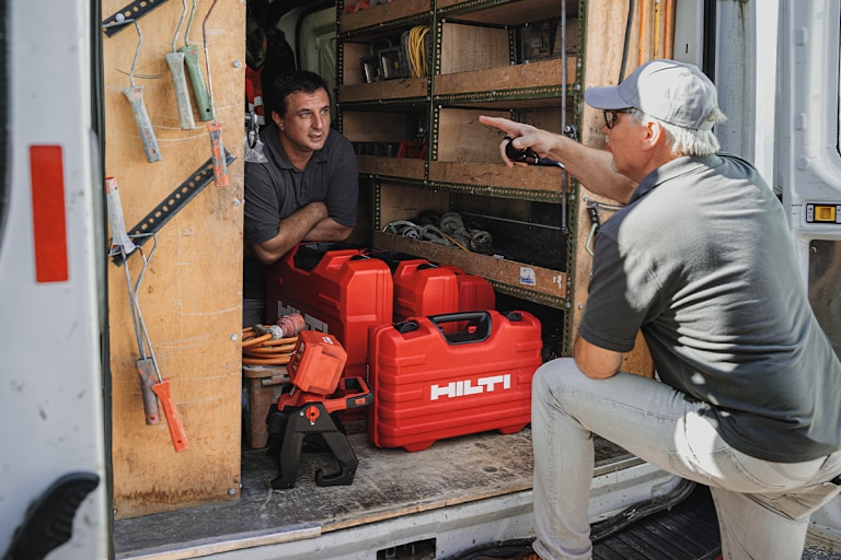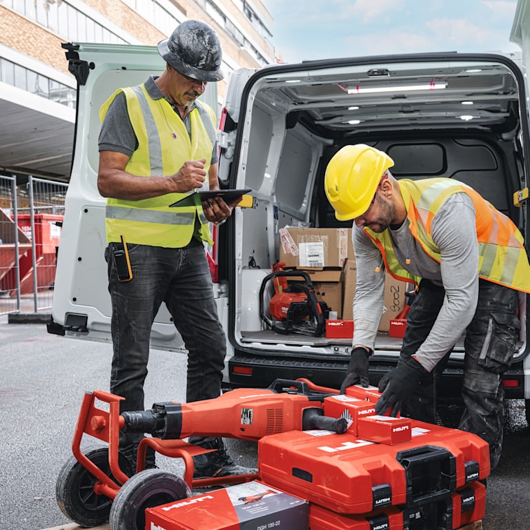 Za pomocą rozwiązania Hilti ON!Track możesz śledzić wszystkie swoje urządzenia, zarządzać nimi i mieć pod kontrolą plan ich konserwacji. Utrzymanie najwyższego poziomu technicznego sprzętu i wysokiej produktywności prac budowlanych jeszcze nigdy nie było tak proste.
