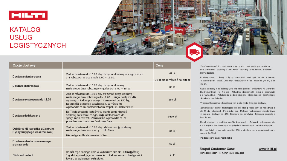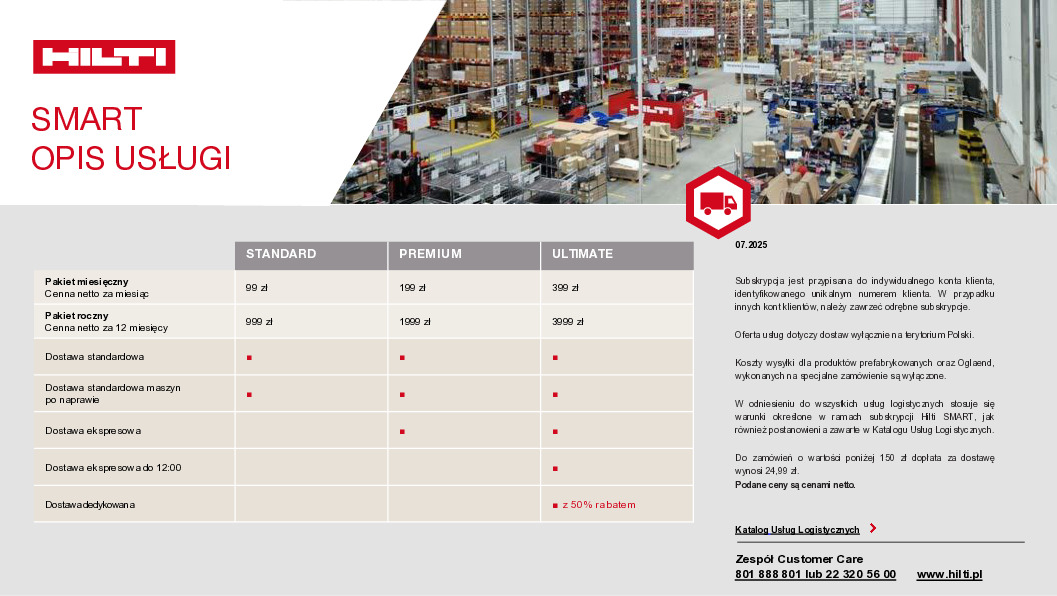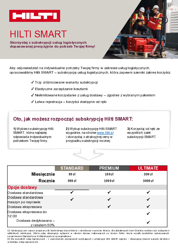 * Wszystkie usługi logistyczne podlegają umowie subskrypcji Hilti SMART oraz warunkom określonym w cenniku usług logistycznych.